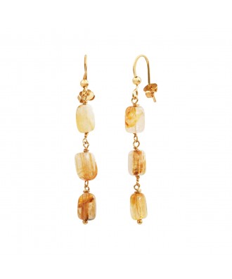 Boucles d'oreilles en quartz rutile appelé cheveux d'ange.