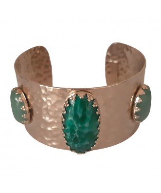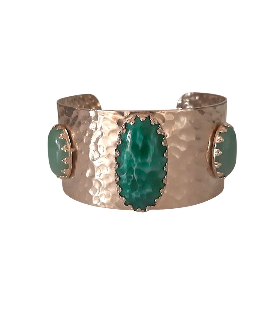 Manchette martelée composée d'une pierre en jade vert & aventurines