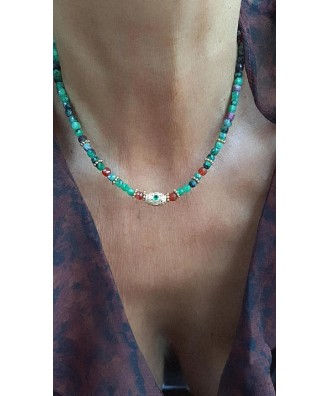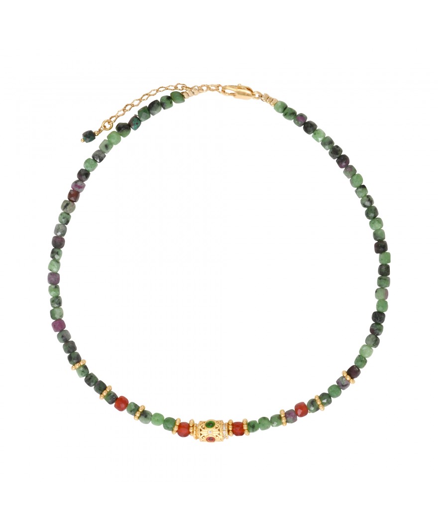 Collier en pierres rubis zoisite & cornaline