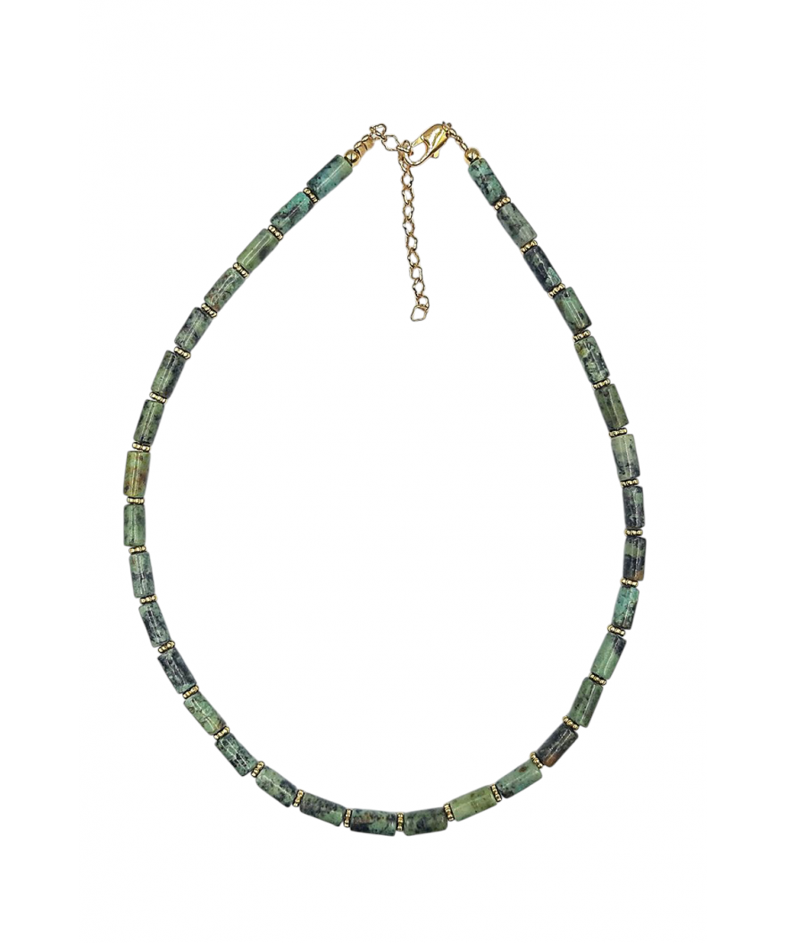 Collier ras du cou tube en jaspe africain & perles dorées