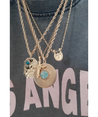 Collier chaîne torsadée et son pendentif médaille Egyptien en vermeil