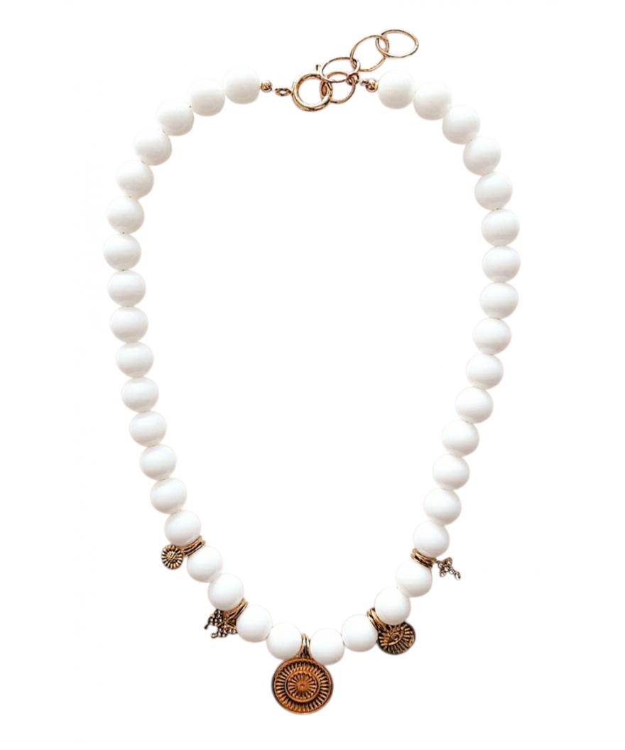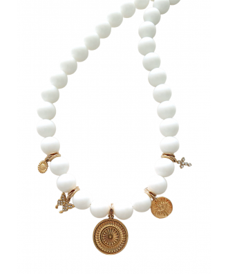 Collier Eden composé de perles jade blanc et de pendentifs charm's.