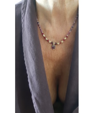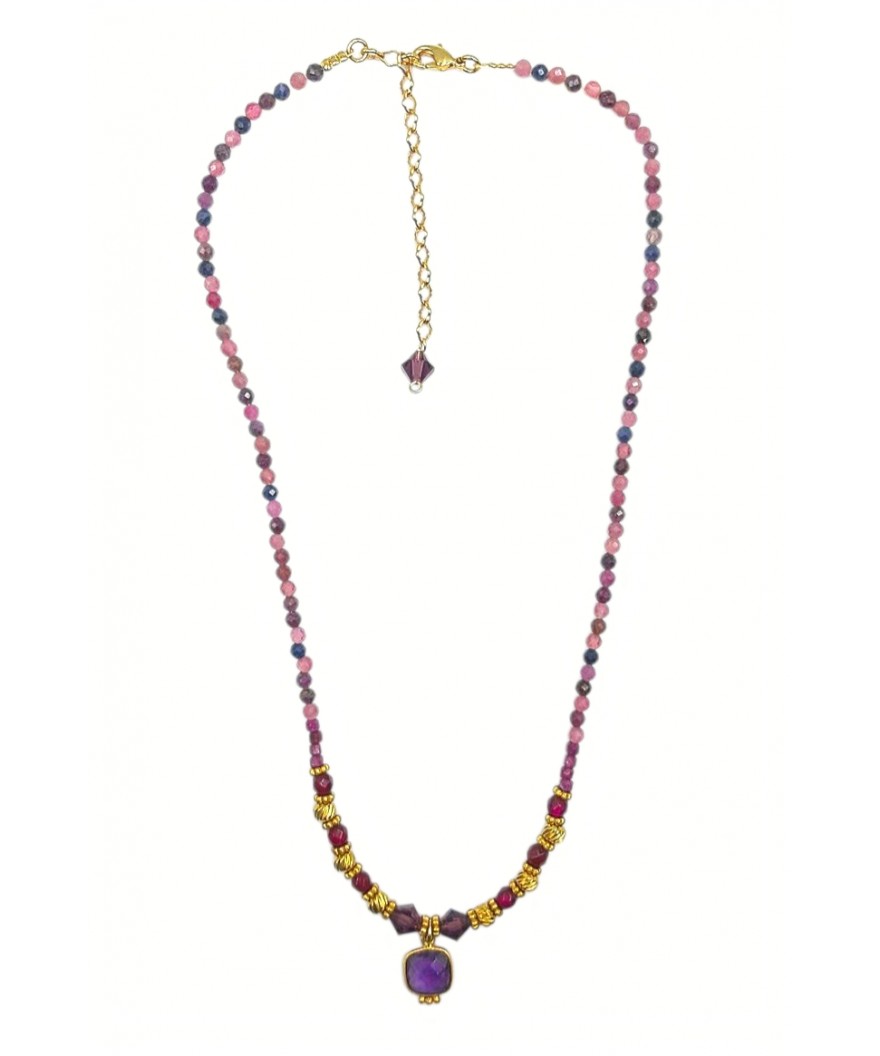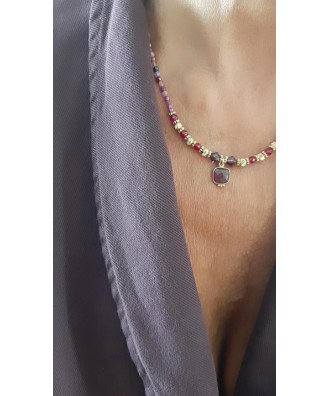 Collier perles en tourmalines, perles facettées grenat & swarovski
