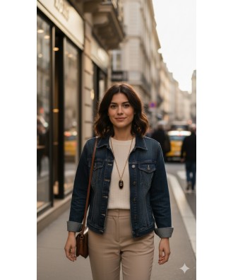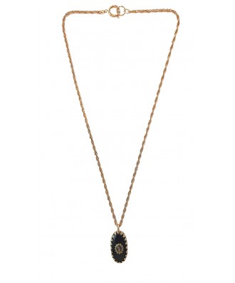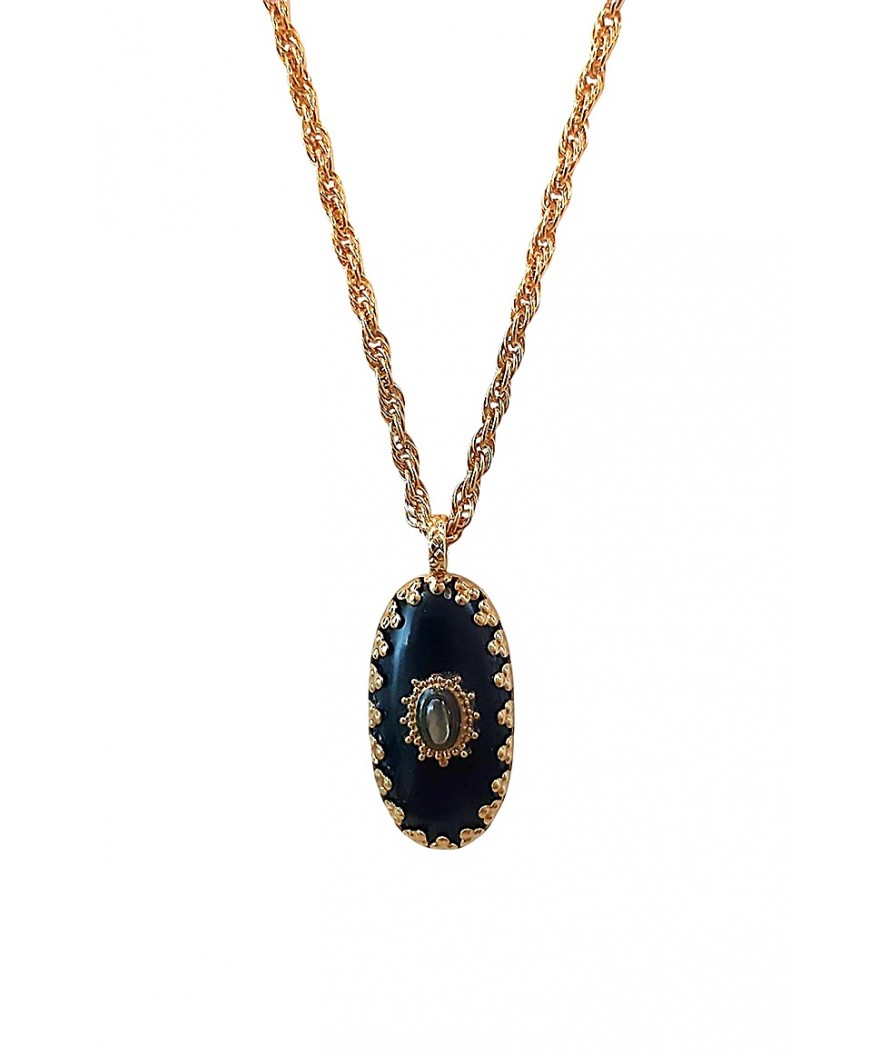Collier chaîne avec son pendentif médaillon en onyx & nacre