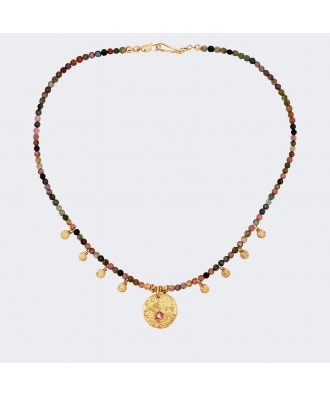 Collier perles en tourmaline multicolores