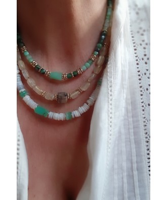 Collier en quartz rutile & perles dorées.