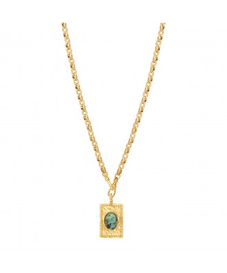 Pendentif médaille forme rectangulaire en vermeil serti d'une