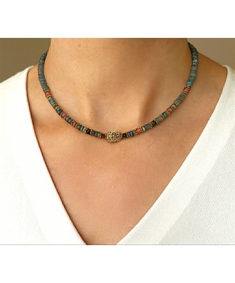 Collier perles labradorite & perles facettées en tourmanile.